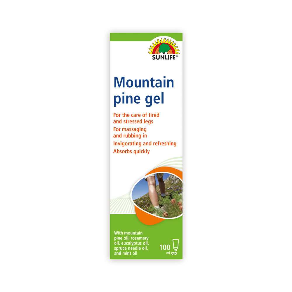Mountain Pine Gel is ideal for rubbing and massaging into tired and strained legs; it has a relaxing and invigorating effect. The combination of mountain pine oil, rosemary oil, eucalyptus oil, spruce needle oil, and mint oil provides soothing relaxation and refreshment. Mountain pine gel is particularly suitable for skin care after sporting activities, while hiking, and for refreshment on hot days or during long car journeys.
